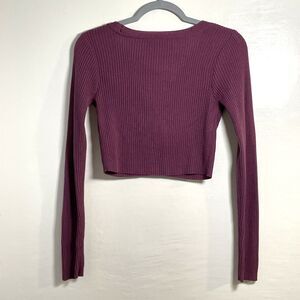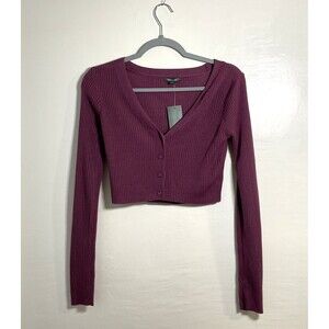 Wild Fable Women's Dark Mauve Long Sleeve V-Neck Crop Cardigan Sweater Sz Small