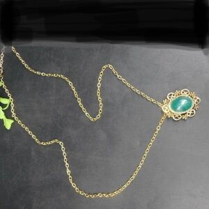 VINTAGE GENUINE STONE PENDANT ON 24”CHAIN NECKLACE