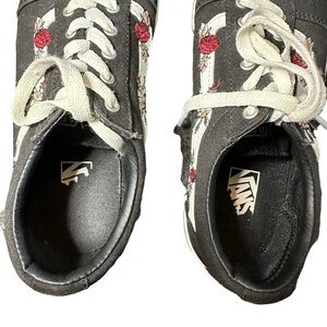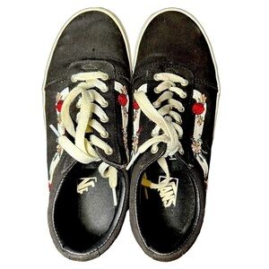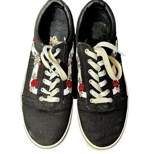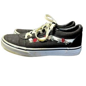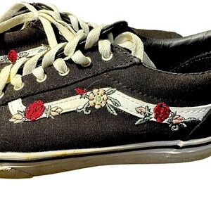 Vans Old Skool Skateboarding Shoe Sneaker Black w/Embroidery Roses Missy Size 5
