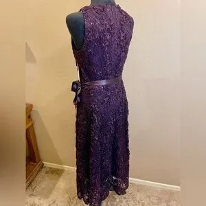 Tahari Deep Purple Lace Prom Dress
