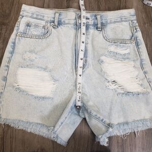 American Eagle Mom Short Light Wash Women's 2 (28) High Rise Distressed Jean Shorts