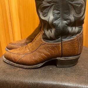Tony Lama ostrich leg that I have not seen this style before. They are marked 10D but I can not even get my heel close to going in so they are 8.5-9’s. Original lemon pegged soles and heels. If they do not fit you I will take them back to give me an idea of the actual size. Boxed up after pictures ready to ship the day after payment sun-thur.