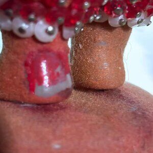 Vintage Beaded Santa & Mrs Claus Figurines – Hand-Pinned Sequins, Flocked Bases,