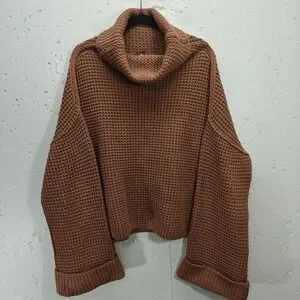 Free People Womens Medium Sweater Burnt Orange Oversized Cowl Neck Chunky Knit