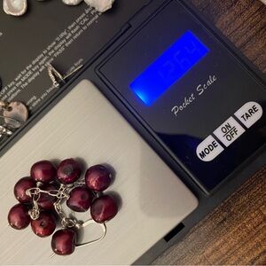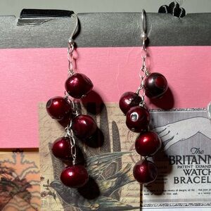 estate sterling silver burgundy red pearl cluster hook wire dangle drop earrings