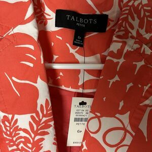 NWT Talbots CASUAL COTTON BLAZER - TROPICAL PINEAPPLE Orange White 6