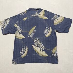 Tommy Bahama Mens Size XL 100% Silk Blue & White Print Hawaiian Camp Shirt