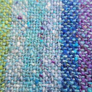 Soft mernino scarf is woven by hand and has a textured (but not stiff) feel to it. Beautiful craftsmanship coming out of Galway's Craft Centre--a little village in Ireland where local artisans create and sell their wares. Check out their website: https://www.spiddalcrafts.com/