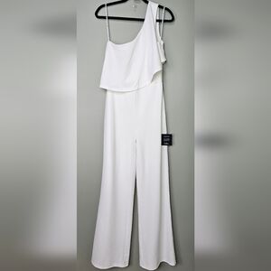 Flawless Vibes White One-Shoulder Tiered Wide-Leg Jumpsuit, Size Medium