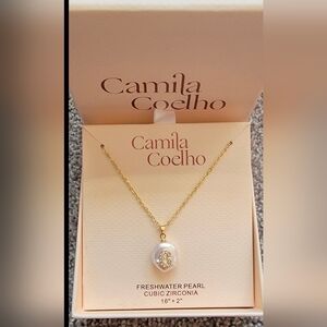 Elegant Camila Coelho necklace featuring a gold chain and a stunning freshwater pearl pendant. Perfect for adding a touch of sophistication to any outfit.