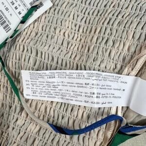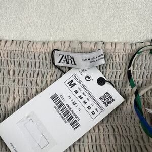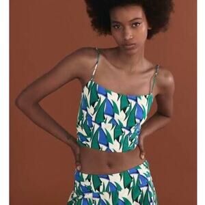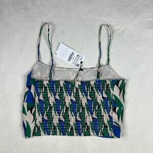 Zara Linen Spaghetti Strap Green/Blue Geometric Crop Top Shirred Back Size M