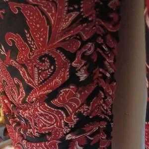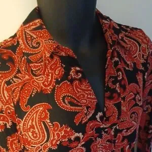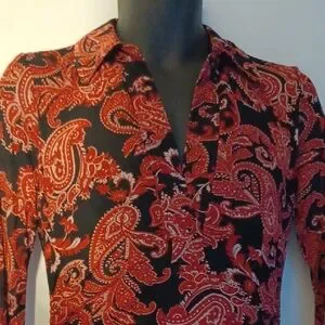 Chic paisley design. Red and black colors. Perfect for any occasion. Long sleeves for added elegance. In brand new condition.