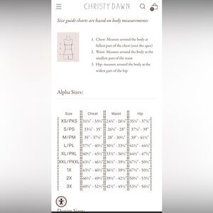Worn only a few times and lovingly eco cleaned, no dryer. Organic cotton, zero flaws, is like brand new. I Just don’t prefer this style CD on me. Has pockets. Smoke free home. CD generic brand size chart added, ptp is 15, waist 13, but the stretch is tremendous-my friend and I wear this dress in medium and she is 38f 31 waist me 34b and 29. And it looks better on her frankly.