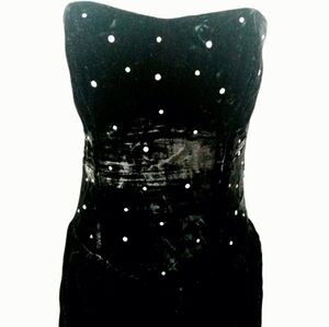 VINTAGE VELVET RHINESTONE HIGH LOW MIDI DRESS SZ M