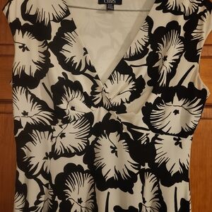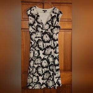 Chaps Black and White Floral Knee Length Dress Size Medium