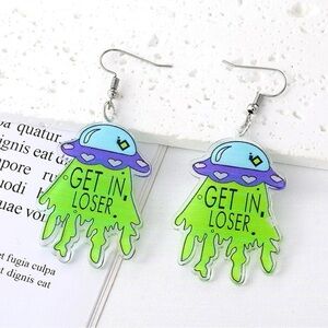 Alien UFO 'Get in Loser' Acrylic Earrings – Halloween Weirdcore Space Jewelry