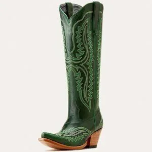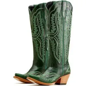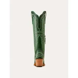 Women's Green Vintage Chunky Tall Knee High Heel Western Embroidery Boots
