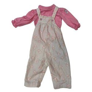 Vintage Health Tex pink outfit long sleeve shirt cat pattern overalls Girls 18mo