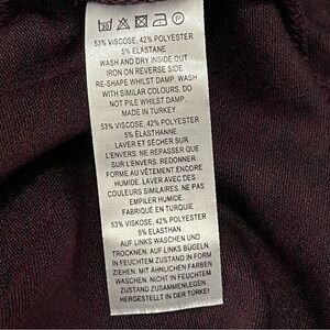 - 53% Viscose, 42% Polyester, 5% Elastane