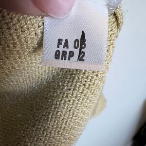 Classic St. John Sport by Marie Gray open cardigan-jacket in a creamy neutral tone. Ribbed shawl collar, long sleeves with gold logo button detail, and a soft tailored drape. Made in Mexico. Labeled size Large. Fabric is an 80% wool / 20% rayon blend—substantial yet soft. FA 06 season code. Style can be worn open or gently fastened with included decorative hook closure (gold-tone hardware).