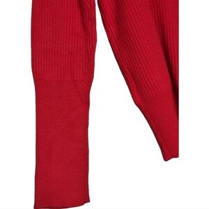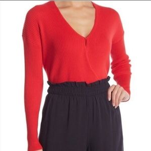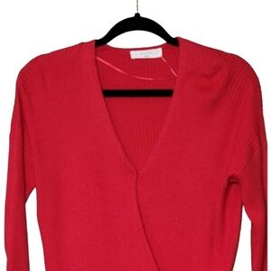 Elodie M Red Ribbed Faux Wrap Sweater V-Neck Long Sleeve Soft Office Knit NWT