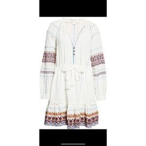 Keep it breezy as you dance down the boardwalk in this cotton cover-up dress featuring tassel-adorned ties and delicate embroidery detailing. 33 1/2" length (size XS) Split neck Long sleeves 100% cotton Dry clean Imported