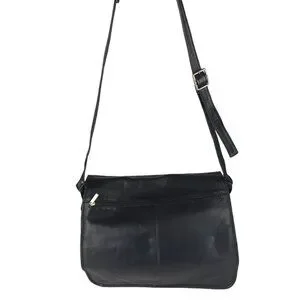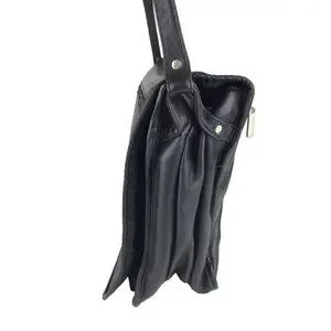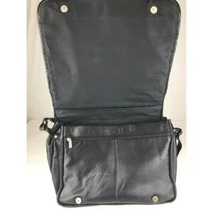 Wilsons Leather Unisex Black Inner Dividers Snap Crossbody Strap Messenger Bag