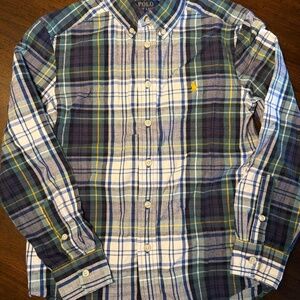 Polo Ralph Lauren Boys Green Blue Plaid Brushed Cotton Button Down M 10-12