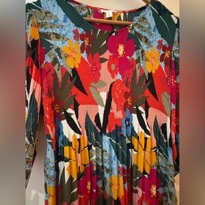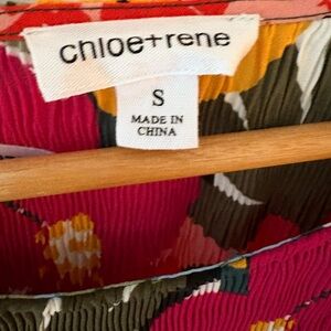 Chloe + Rene floral peplum pleat babydoll top size small bright oversized