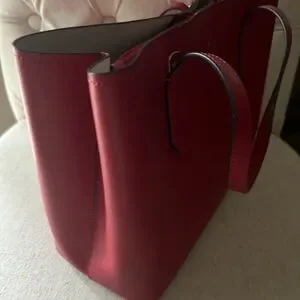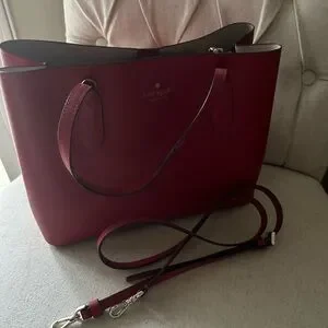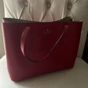 Chic Kate Spade tote in rich red. Features elegant design and detachable strap.