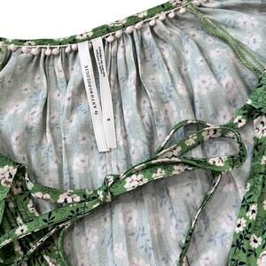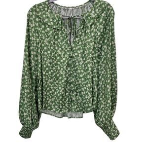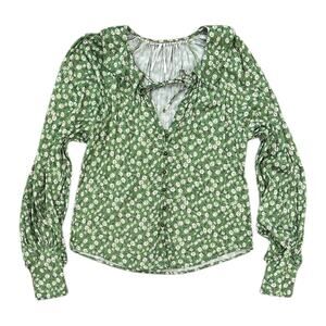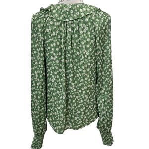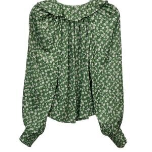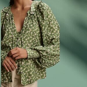 Anthropologie Button-Front Peasant Blouse In Green Motif