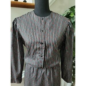 Herman Marcus Women's Black Striped Long Sleeve Vintage Knee Length Dress Size 14.