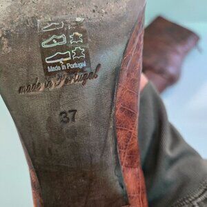 Free People Cecile Brown Croc Embossed Leather Block Heel Booties Size 37/6.5