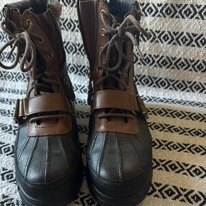 Step out in style with these Ralph Lauren women's boots. Featuring a rugged brown and black design, these boots offer both durability and fashion. Perfect for any adventure.