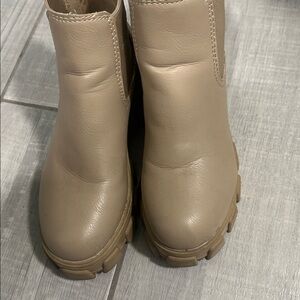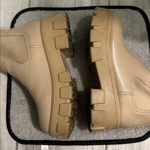 Stylish cream boots with chunky soles. Perfect for a bold look.