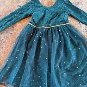 Hanna Andersson Teal Dress with Gold Accents- Christmas dress- worn once likenew