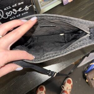 Stylish crossbody with iconic logo design. Perfect for everyday wear. Features adjustable strap.