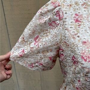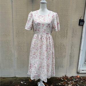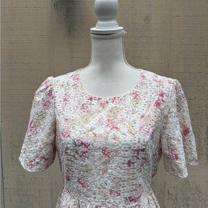 Orange Creek Pink and White Floral Eyelet Midi Dress