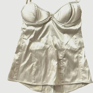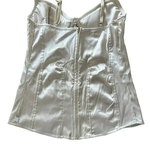 Vintage Foxy Jeans Cream Satin Corset Bustier • Sz L • Coquette Milk Maid Y2K