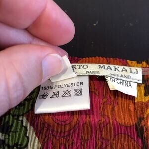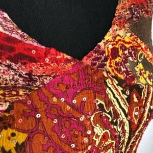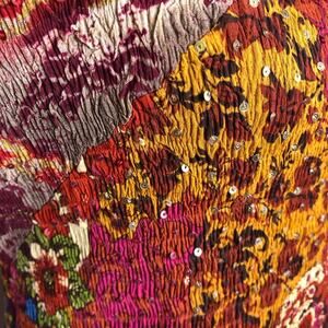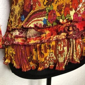 Alberto Makali red gold mixed floral print sequin crinkle top size Large