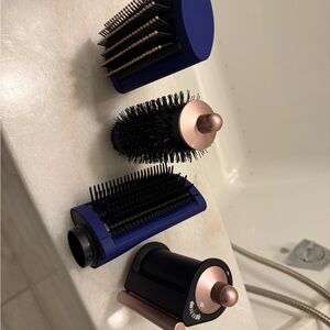 Dyson hair styling kit with blue and black design. Includes multiple attachments for versatile styling. If you are an avid styler this is a versatile kit that allows you to style any type of blow out without any hair damage.