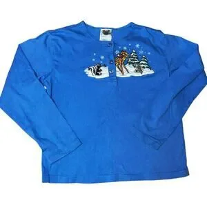 Vintage Disney Store Bambi Thumper Flower embroidered Holiday henley girl 10-12