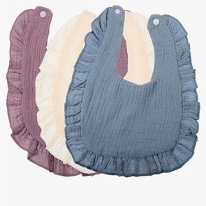 Set of 5 muslin ruffle bibs. All in unused condition. Smoke free home.