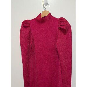 Alice and Olivia Issa Hot Pink Glitter Women's Size S Puff Sleeve Turtleneck Min