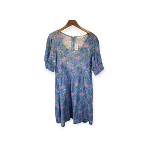 NWT LOFT Blue Wildflower Linen Blend Babydoll Dress Sz 6