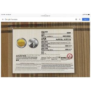 Certificate states 50 grams of 999 silver and 2 grams of 999 gold