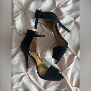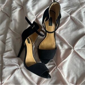 Zara Heels Ankle Strap Peep Toe Back and Tan