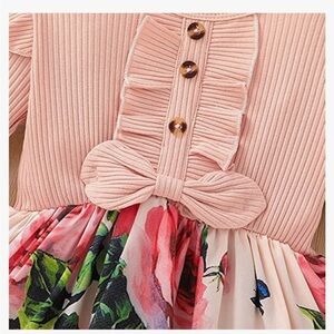 Design features: Our baby toddler girls' flower skater dress features an a-line skirt, floral patterns, long sleeves, ruffles front, bowknot decoration, and soft texture fabric