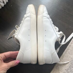 Stylish white sneakers with lace-up design. Perfect for casual wear. Size 8.5 women’s. Good used condition