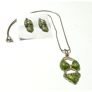 Vintage Fun Lime Green Bikini Necklace and Earrings Set Silver-tone Metal Beach
